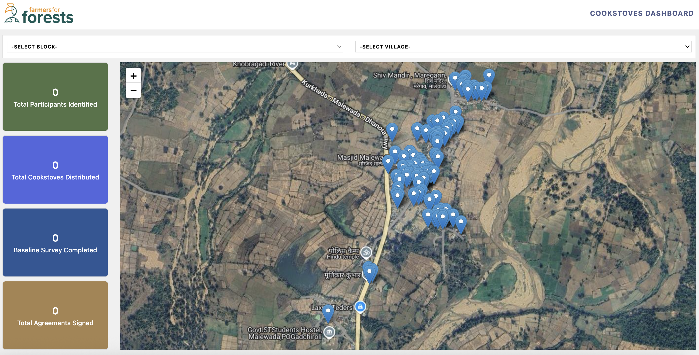 This platform tracks forest health and reduction in logging, while monitoring cookstove adoption, to estimate carbon saved through reduced fuelwood use. It combines satellite data, field reports, and community inputs for a clear view of impact